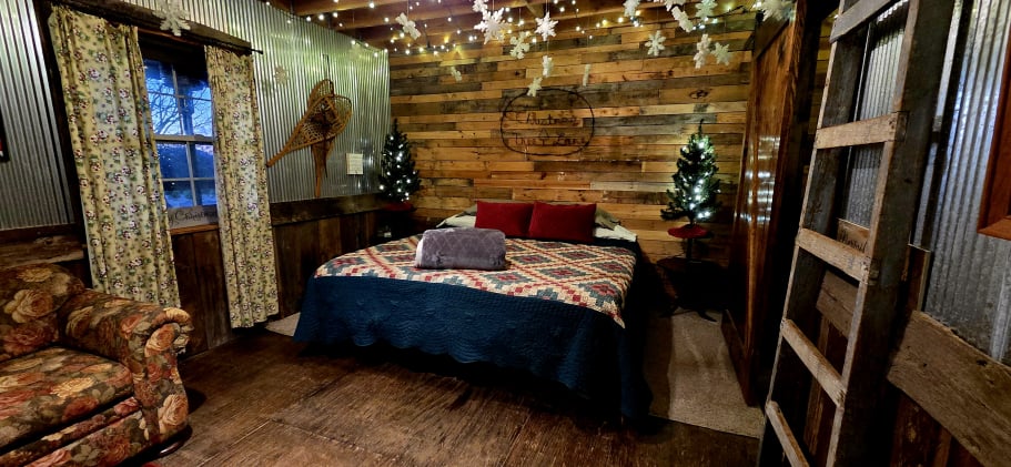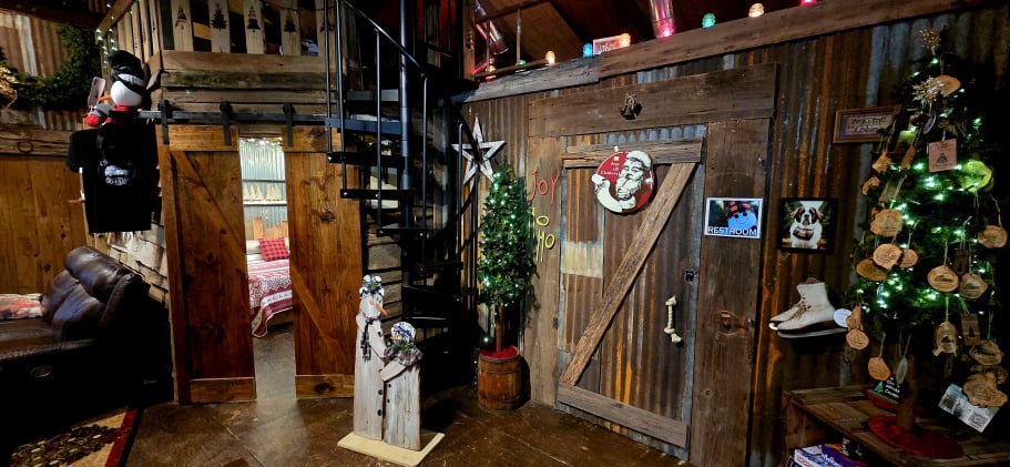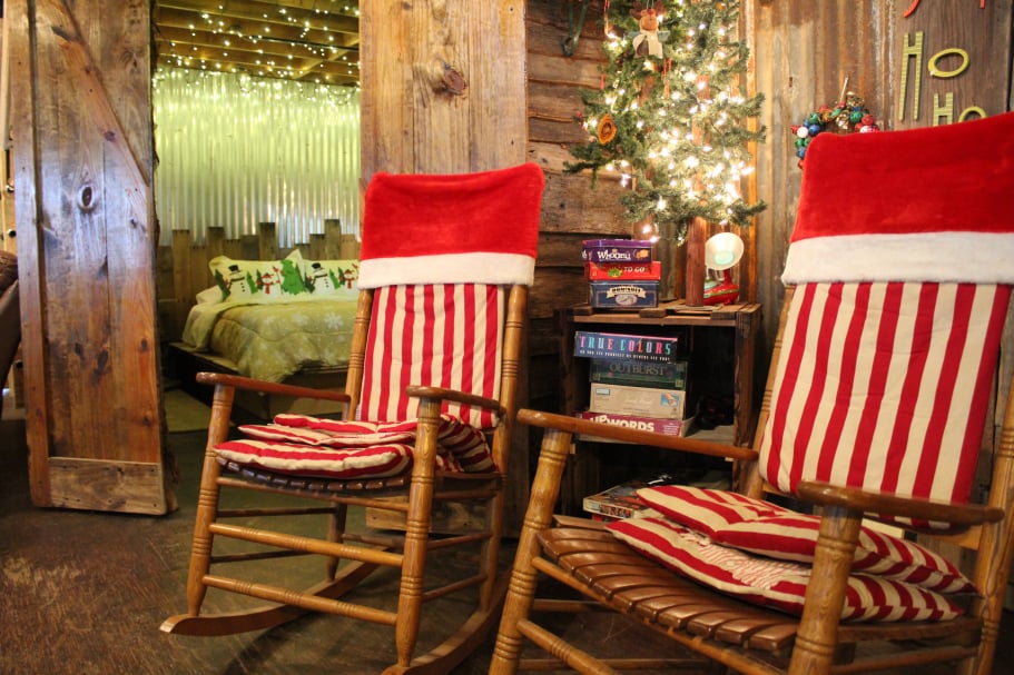We began building The Christmas Cabin in 2005. Our plan was to rent the building during the non-Christmas season and as retail space during the Christmas season. When we discovered the option of short-term renting we realized it would fit well with our Christmas Tree Farm schedule. In January 2018 we opened The Cabin for nightly renting and the rest is history. There is always that one person in the family who is crazy about Christmas, so we designed our Christmas Cabin to give you a Hallmark experience from the moment you walk in. The Christmas Cabin stays Christmassy all year long.